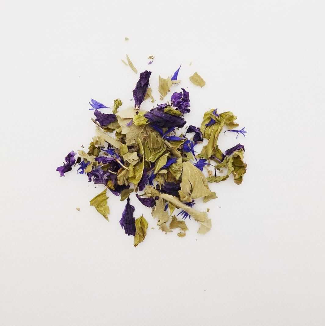 Zutaten: Orangenminze, Frauenmantel, Malvenblüten, Kornblumen, Salbei